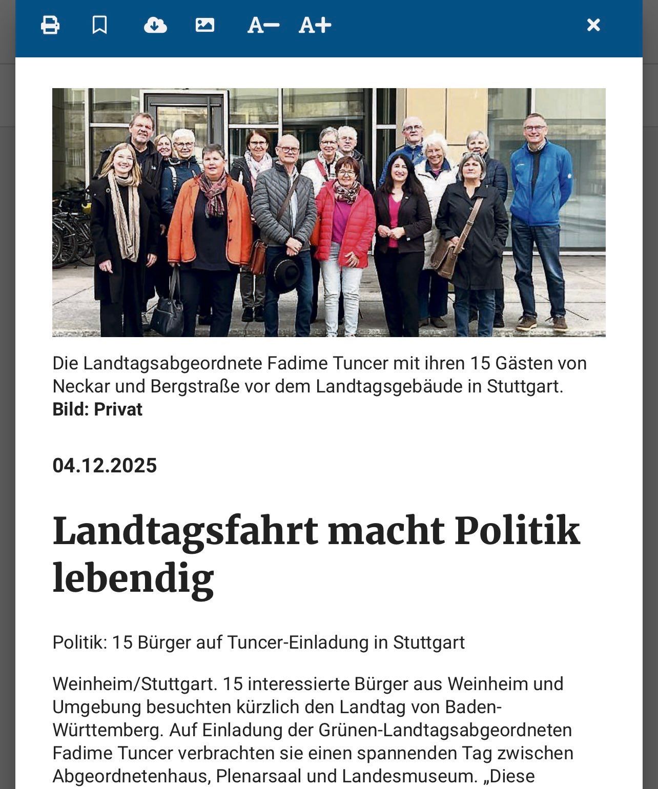 Die Weinheimer Nachrichten berichteten am 5. Dezember 2025 in ihrer Print-Ausgabe von der Landtagsfahrt.