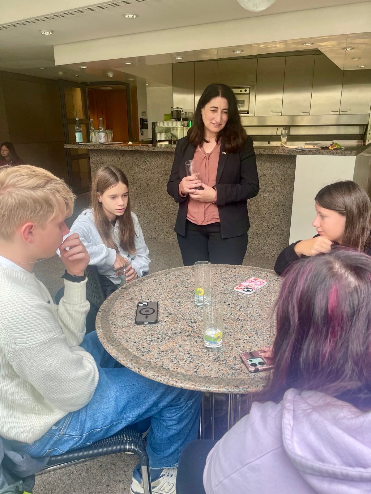 Wir besichtigten das Landtagsgebäude, den Plenarsaal, das Haus der Abgeordneten und mein Büro. Zwischendurch Foto-Stopp und kurzer Austausch mit Innenminister Thomas Strobl (CDU) und Sozialminister Manne Luche (BÜNDNIS 90/DIE GRÜNEN). Über Jugend- und Kulturpolitik haben wir dann ausführlich mit unserem jugendpolitischen Sprecher Erwin Köhler diskutiert.