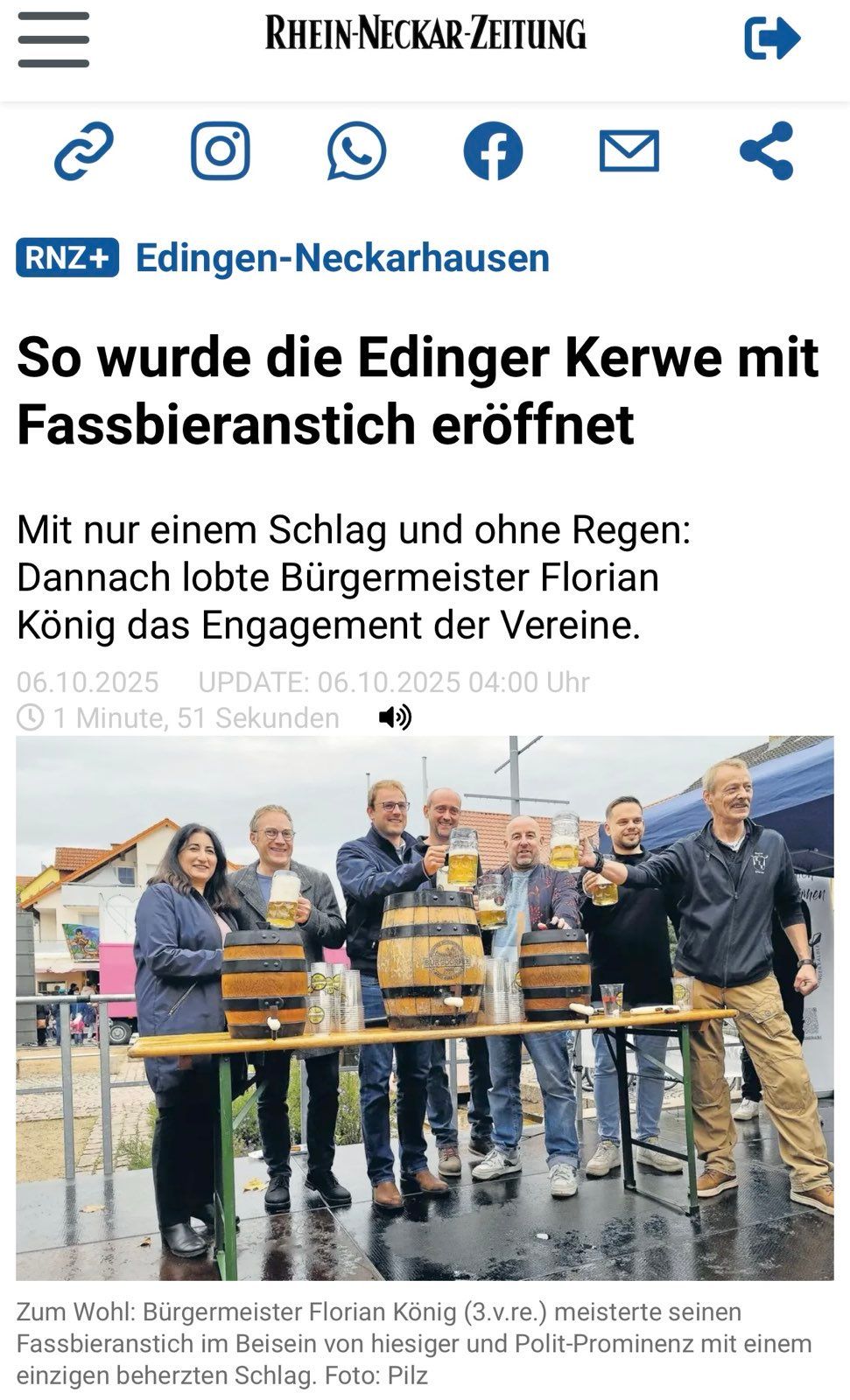 Über die Neckarhäuser Kerwe berichtete die Rhein-Neckar-Zeitung am 8. August 2025 hier und über die Edinger Kerwe am 6. Oktober u.a. hier .