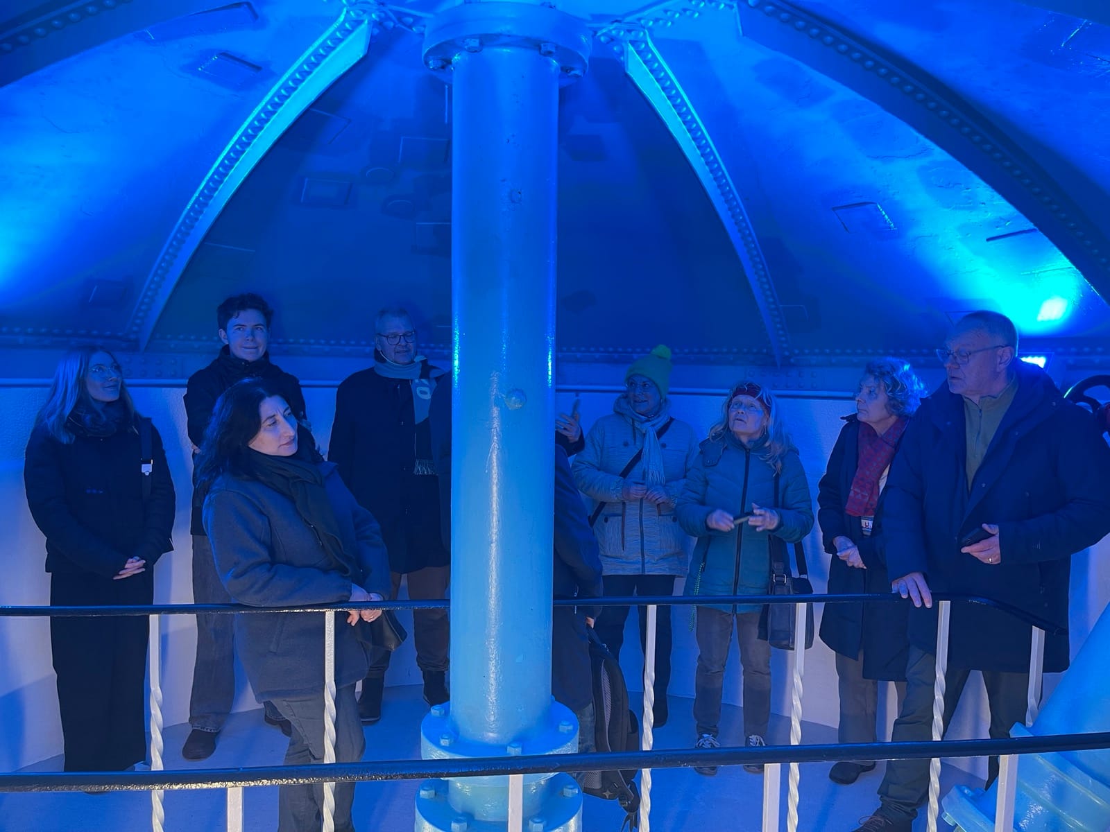 Die Führung übernahm Evelyn Bausch, zweite Vorsitzende des Heimatbund Ladenburg, der in diesem Jahr sein 100-jähriges Bestehen feiert und im Auftrag der Stadt die Besichtigungen durchführt. Sie schilderte anschaulich die Historie des Turms und machte die Geschichte und technischen Details lebendig: „1898 war ein eisiger Winter, der Neckar komplett zugefroren. Die Zementwerke in Heidelberg brannten nieder, weil es kein Löschwasser aus dem Fluss gab. Das war der entscheidende Moment, über einen Wasserturm nachzudenken“, so Bausch. Ursprünglich hatte man ans Martinstor gedacht, doch das war zu niedrig. „Mindestens 35 Meter Höhe waren nötig, um den hydraulischen Druck von 3,5 bar zu erzielen, der für die Versorgung der Stadt notwendig war.“